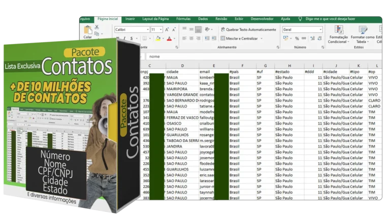 Pacote exclusivo com 10 Milhões de contatos que acompanham o primeiro nome do cliente, número, cidade e dados importantes. Perfeito para já começar a engajar novos clientes seja qual for seu negócio.